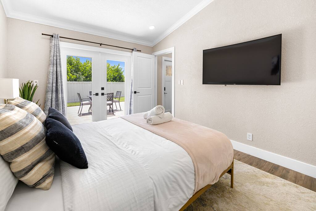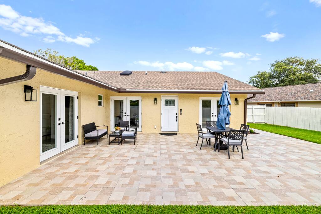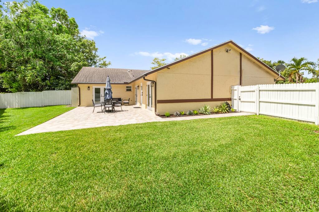Unwind in Style: Your Wellington Escape Awaits Immerse yourself in comfort and thoughtful design at Villa Azalea, your private oasis in Wellington. Relax in a spacious living area, where every detail has been curated to create a serene and inviting atmosphere. Enjoy modern comfort and savor the elegance of tasteful furnishings and a well-appointed space ideal for unwinding. Quiet tranquility allows you to escape the hustle and bustle in this peaceful retreat with thoughtful design in every corner reflecting a commitment to your comfort and well-being. Whether you're a couple seeking a romantic getaway, a solo traveler yearning for relaxation, a family looking to build memories or in town attending the equestrian games, Villa Azalea offers the perfect blend of style and comfort. 🛏️ Sleeping Arrangements: Bedroom 1: Queen bed | Spacious & serene | Closet space & natural light Bedroom 2: Queen bed | Cozy comfort with modern decor Each bedroom is furnished with fresh linens, plush pillows, and room-darkening curtains for a restful night's sleep. 🛁 Bathrooms: Bathroom 1: Full bath with shower Bathroom 2: Full bath with tub/shower combo Both bathrooms are stocked with essentials, soft towels, and starter toiletries. 🍽️ Home Highlights: Fully equipped kitchen with cookware, drip, espresso & KCup coffee maker & dining area Bright living room with Smart TV, comfy seating, and fast Wi-Fi Spacious backyard with outdoor furniture and dining table – perfect for relaxing or entertaining Washer & dryer, free parking, and easy self check-in Family-friendly with board games and reading materials.