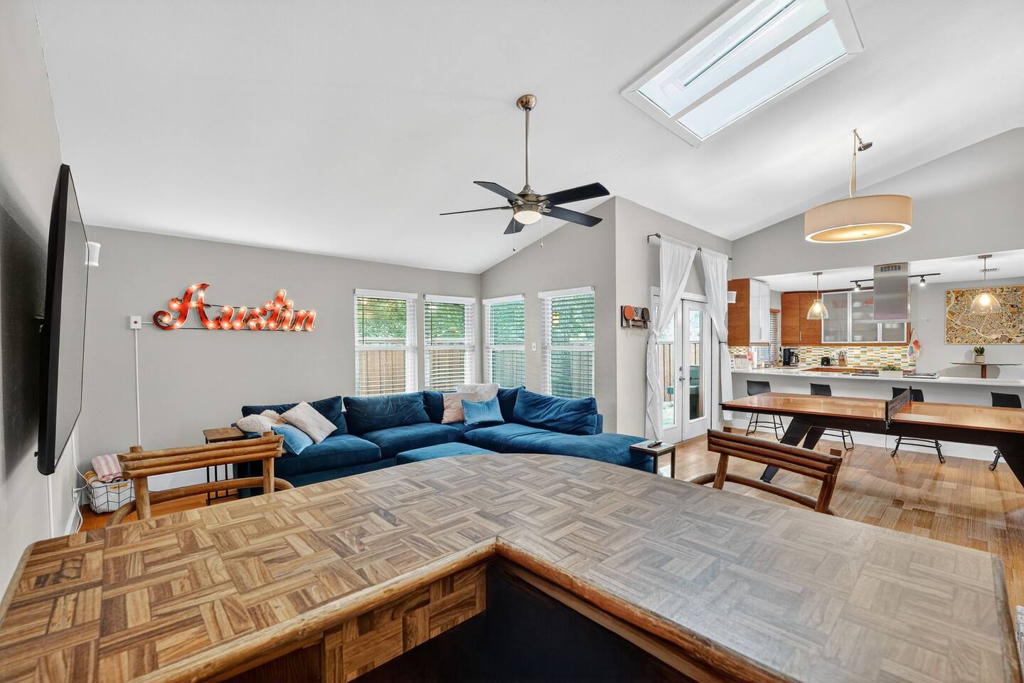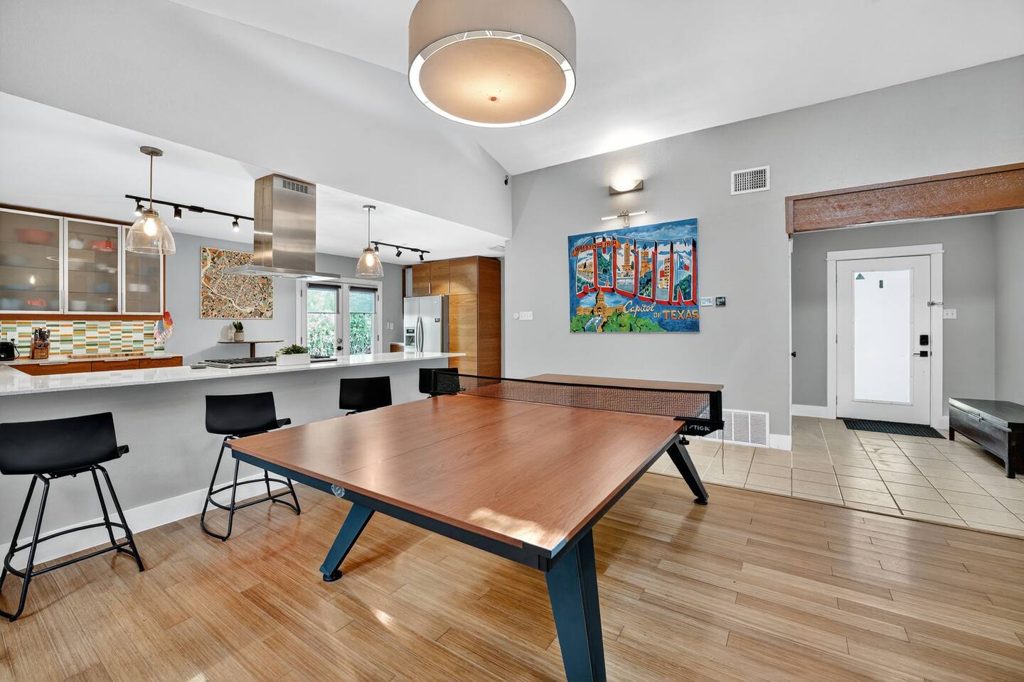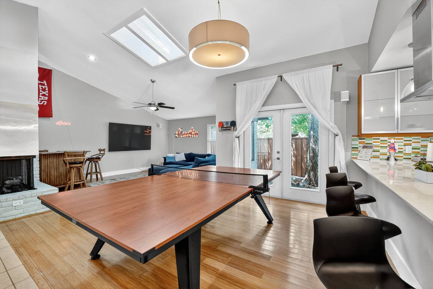 Enjoy open, sunlit living spaces, a private backyard pool, and thoughtful amenities to make your stay effortless and relaxing. Whether you’re in town for work or play, you're just minutes from The Domain, Q2 Stadium, and a short drive to Downtown Austin. 🛏️ Sleeping Arrangements: Bedroom 1: King bed | Spacious & serene | Closet space & natural light Bedroom 2: Queen bed | Cozy comfort with modern decor Bedroom 3: Two Queen beds | Great for groups or kids | Ample space to spread out Each bedroom is furnished with fresh linens, plush pillows, and room-darkening curtains for a restful night's sleep. 🛁 Bathrooms: Bathroom 1: Full bath with shower & tub combo Bathroom 2: Full bath with tub/shower combo Both bathrooms are stocked with essentials, soft towels, and starter toiletries. 🍽️ Home Highlights: Fully equipped kitchen with cookware, coffee maker & dining area Bright living room with Smart TV, comfy seating, and fast Wi-Fi Spacious backyard with private pool – perfect for relaxing or entertaining Washer & dryer, free parking, and easy self check-in Family-friendly with games, books & kid essentials. -------------- Nearby Attractions: 1. The Domain ~ 8 min drive from the house Often called "Austin's second downtown," The Domain is a large, upscale outdoor shopping center with a wide variety of retail stores, restaurants, bars (especially on Rock Rose Avenue), and entertainment options like the Museum of Ice Cream, iPic movie theater, and The Dirdie Birdie mini-golf. It's a major hub for dining, shopping, and nightlife in North Austin. 2. Q2 Stadium ~ 6 min drive from the house Home to Austin FC, the city's Major League Soccer team. Even if there isn't a game, the stadium area often hosts events and has nearby dining options at "The Pitch." 3. Walnut Creek Metropolitan Park ~ 7 min drive from the house An expansive park offering miles of hiking and biking trails, off-leash areas for dogs, and scenic picnic spots. Great for outdoor enthusiasts. 4. Asian Cuisine & Markets ~ 5 min drive from the house North Austin is known for its diverse Asian food scene. Areas like Chinatown Center on North Lamar, The Crescent Shopping Center on Airport Blvd, and H Mart on Lakeline Blvd offer a wide array of Chinese, Vietnamese, Korean, and other Asian restaurants and supermarkets. 5. Texas Farmers Market at Lakeline ~ 17 min drive from the house One of Austin's largest farmers' markets, offering a wide range of local vendors.